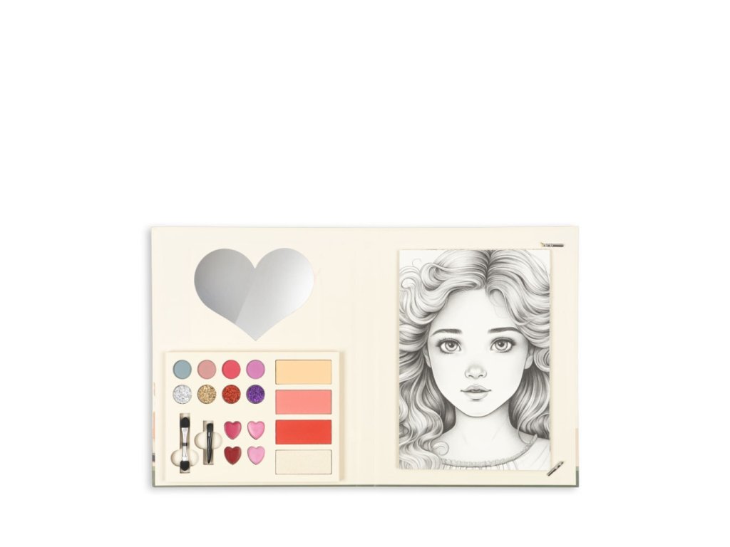 Knížku tvoří 15 stran s různými tvářemi, 8 očních stínů (4 třpytivé a 4 matné), 1 rozjasňovač, 2 tvářenky, 2 štětce s aplikátorem a 4 balzámy na rty.