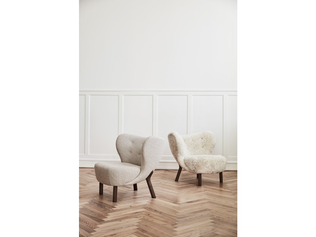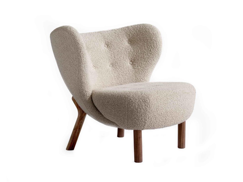 Křeslo Little Petra je pojmenováno po tchýni Viggo Boesena. Charakterizuje jej nízko posazené sedátko a ergonomický tvar pro maximální oporu zad a beder. Klíčová je kvalita jeho zpracování. Pro výrobu se používají ty nejlepší materiály, které zajištují dlouhou životnost a odolnost. V tomto případě se jedná o kombinaci masivního ořechového dřeva s překližkou, která je následně potažena HR pěnou a polyesterovou vatou. Čalounění je z vlněného bouclé Karakorum. Křeslo má velice kompaktní rozměry, díky nimž skvěle padne i do menších interiérů. Ať už ho umístíte do obývacího pokoje, kanceláře nebo ložnice, stane se okamžitě středem pozornosti.