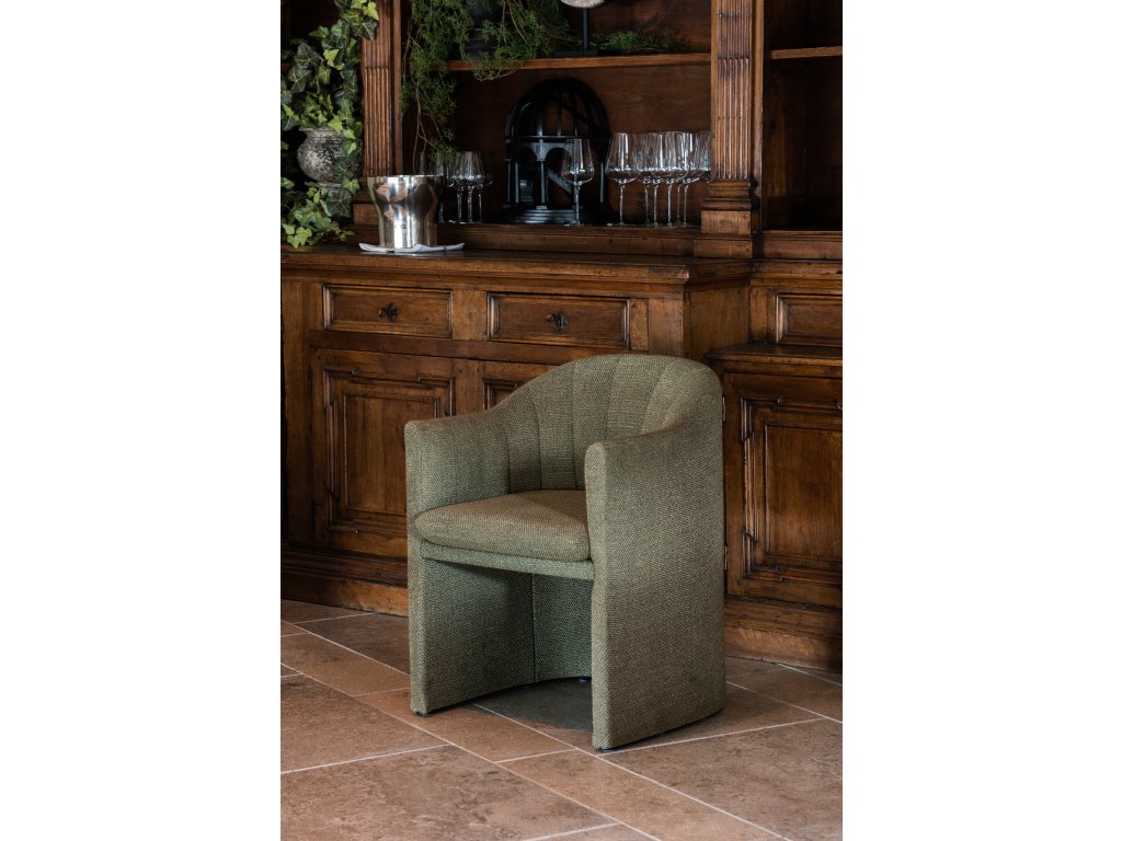 Masivní rám z ořechového dřeva je precizně zpracován tradičními truhlářskými technikami a vytváří robustní, ale elegantní konstrukci. Sedák a opěradlo jsou čalouněny vysoce kvalitní látkou či kůží, která se dokonale přizpůsobuje tělu a nabízí maximální komfort. Charakteristické jsou také jemně zaoblené loketní opěrky, které plynule navazují na celkový tvar křesílka.