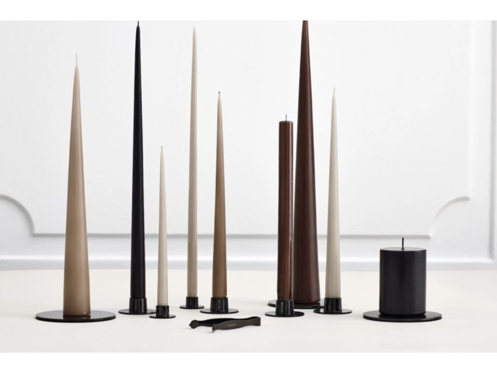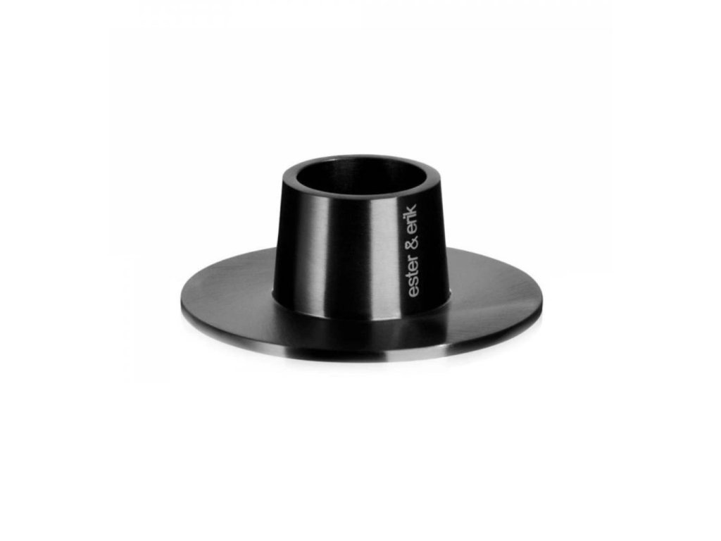 Kulatý svícen dánské značky Ester & Erik podtrhne krásu a eleganci vysokých svíček. Je vyrobený z nerezové oceli s exkluzivní PVD povrchovou úpravou, která patří k nejnovějším ekologickým metodám potahování kovů, poskytuje vynikající kvalitu a zvyšuje odolnost produktu. Černá barva s matným finišem sluší zejména všem studeným a tmavším odstínům svíček.