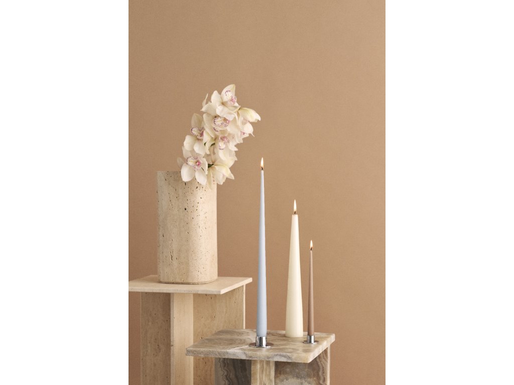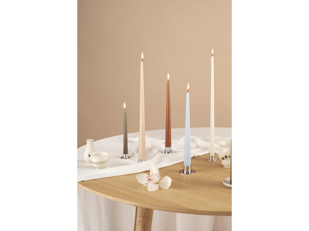 Kulatý svícen dánské značky Ester & Erik podtrhne krásu a eleganci vysokých svíček. Je vyrobený z nerezové oceli s exkluzivní PVD povrchovou úpravou, která patří k nejnovějším ekologickým metodám potahování kovů, poskytuje vynikající kvalitu a zvyšuje odolnost produktu. Stříbrná barva s lesklým finišem sluší zejména všem studeným a pastelovým odstínům svíček. Božsky také vypadá se slavnostními barvami Vánoc.