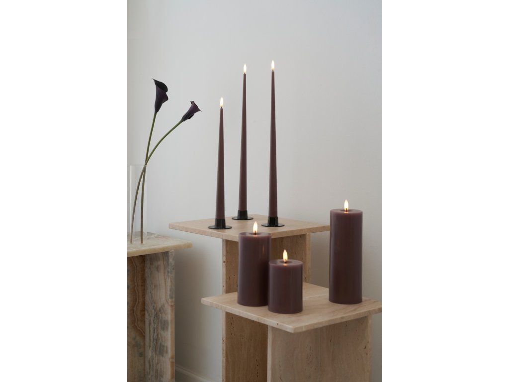 LED svíčky mají kónický tvar a zastřený růžový odstín, který krásně ladí s jakýmkoliv interiérem. Každý kus je ručně máčený do pravého vosku, takže působí zcela autenticky a ve svícnu pevně stojí. Realistický 3D plamínek jemně poblikává, čímž vytváří příjemné, tlumené světlo s atmosférou skutečného svícení.