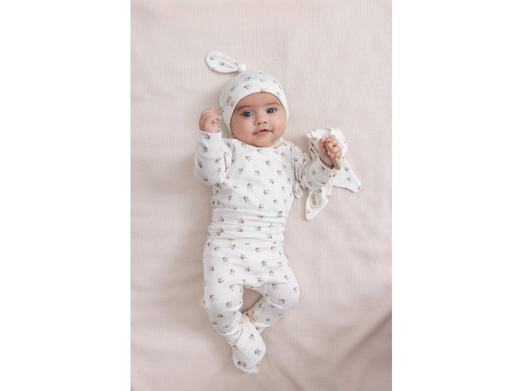 Legínky s roztomilým potiskem kytiček pro miminka a novorozence. Legínky mají vysoký pas, který krásně drží přes bříško, ale nikde ani trošku netlačí.