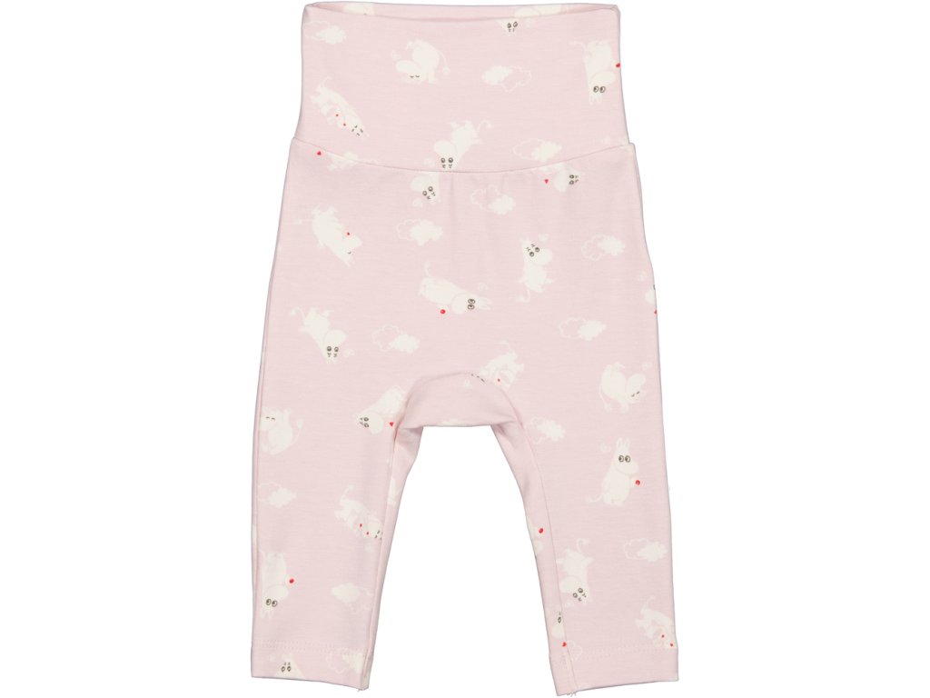 Legínky s roztomilým potiskem Moominků pro miminka a novorozence. Legínky mají vysoký pas, který krásně drží přes bříško, ale nikde ani trošku netlačí.