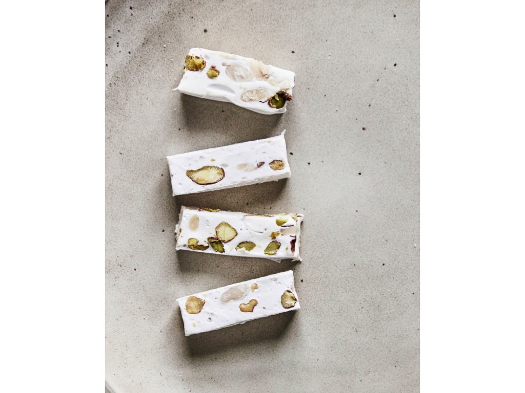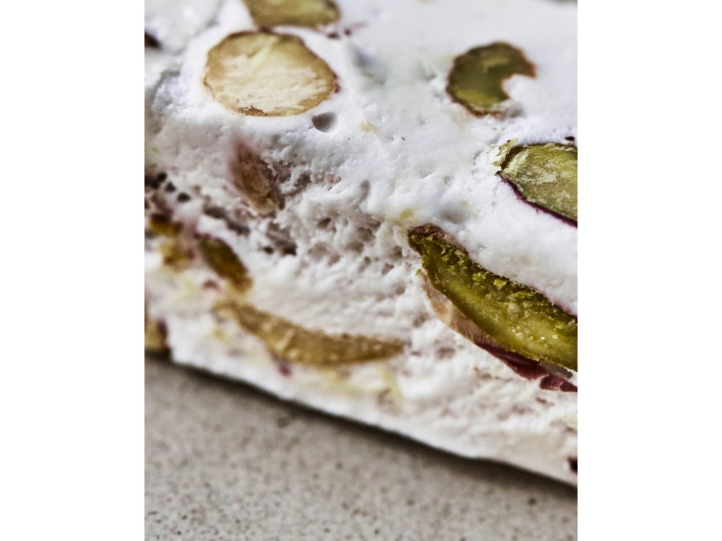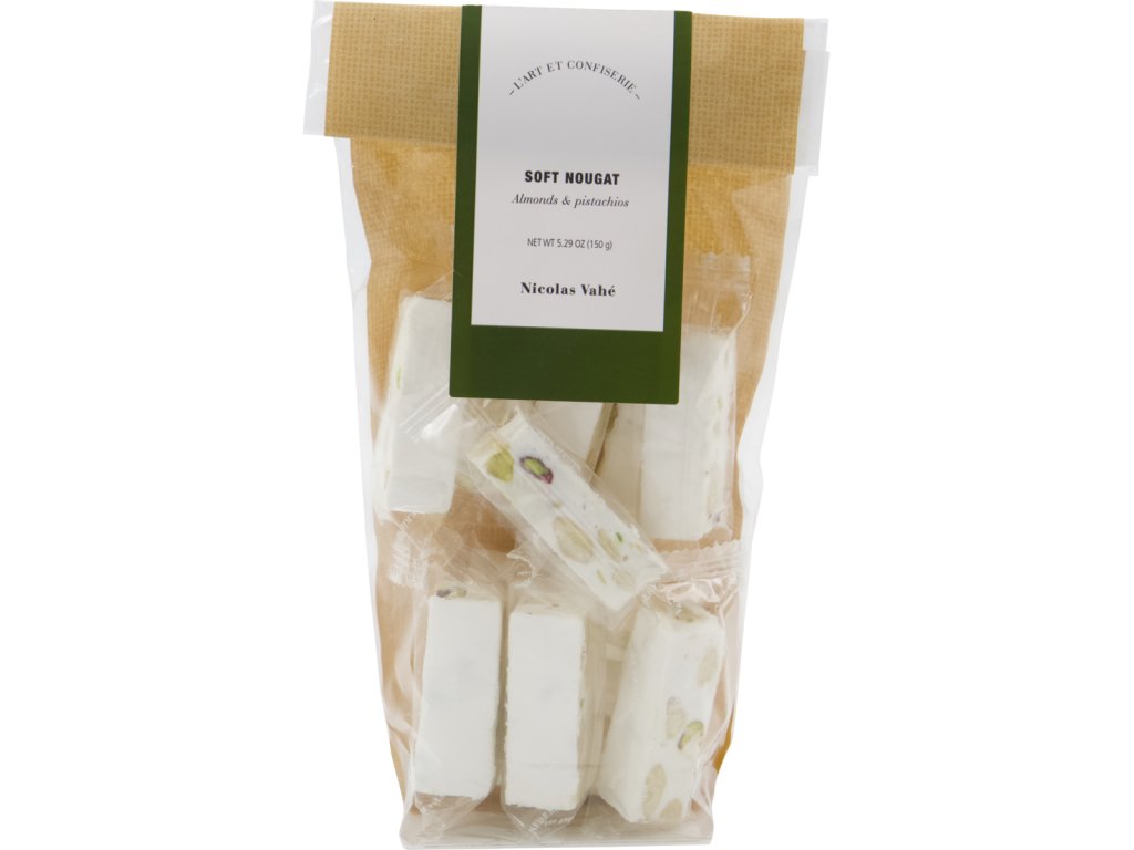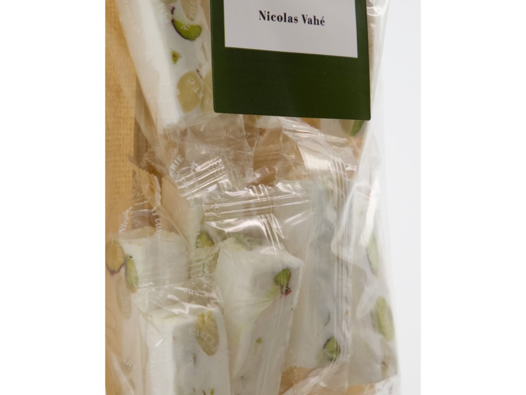 Měkký italský nugát s mandlemi a pistáciemi od Nicolas Vahé ve stylovém balení, který z něj dělá perfektní dárek pro každou příležitost.