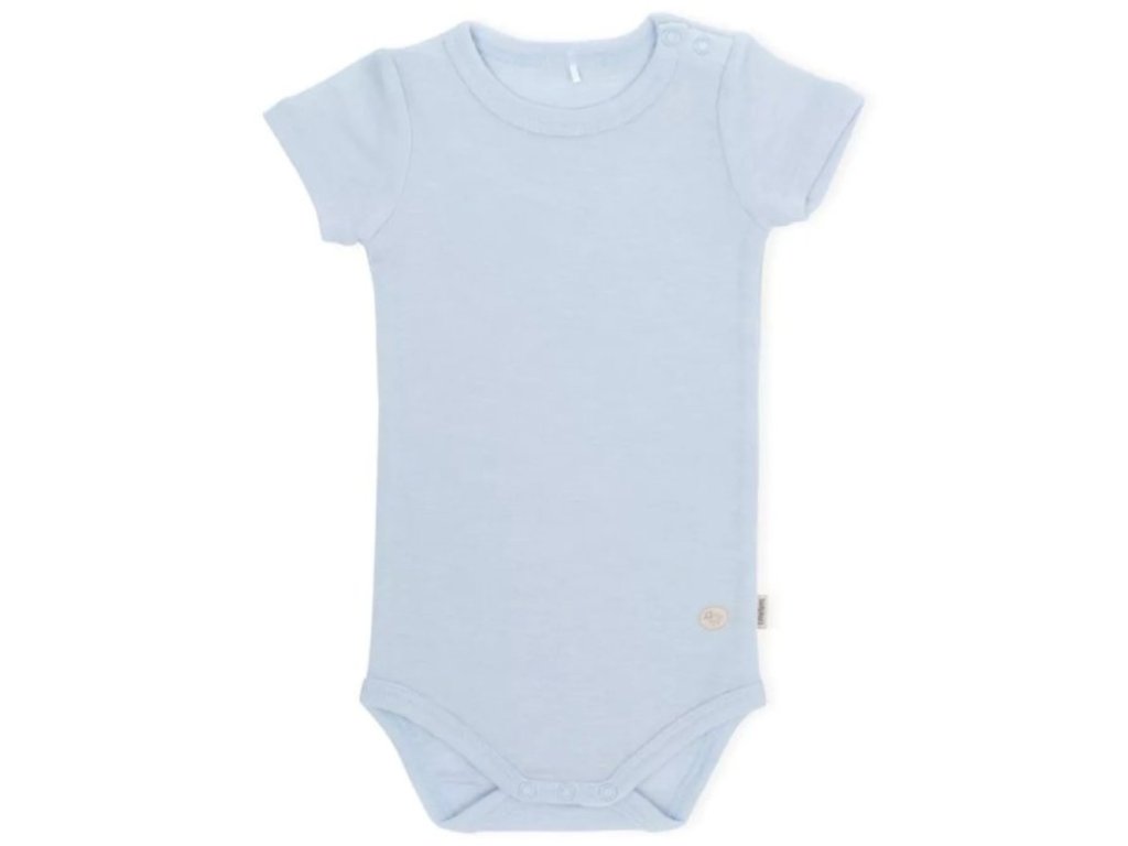 Dětské merino body s krátkým rukávem "Light Blue" Lillelam