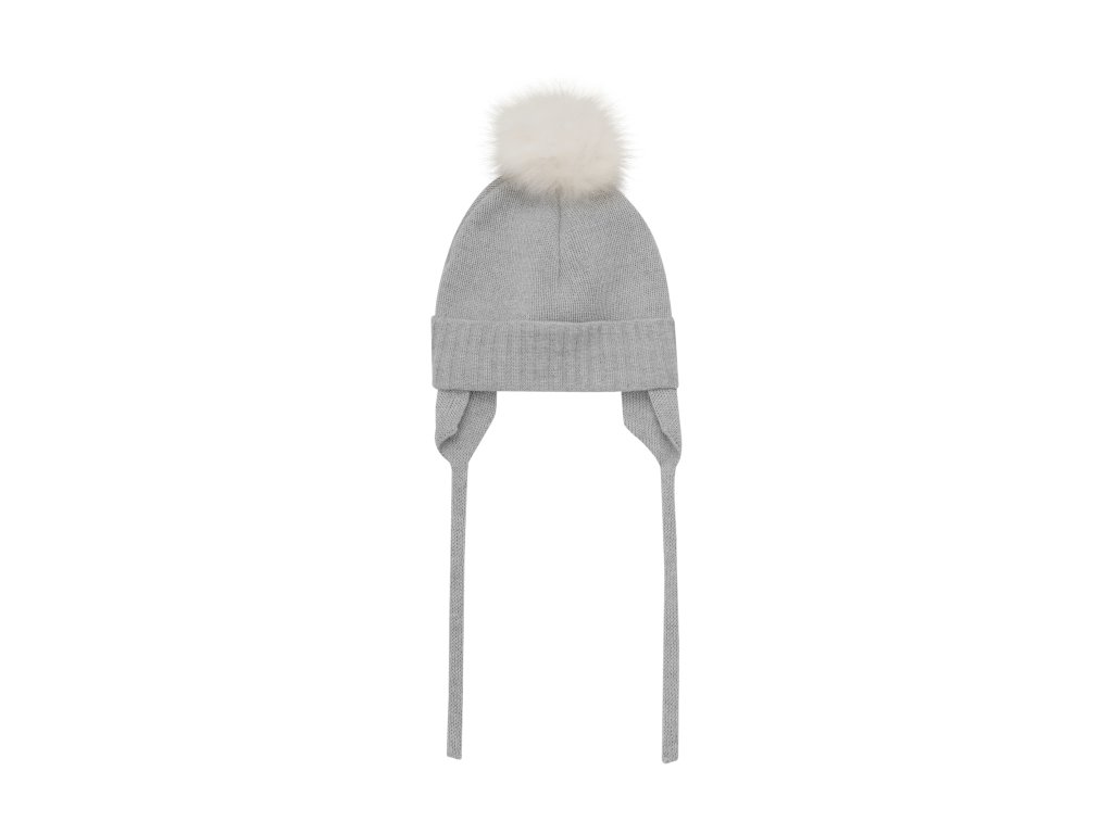Čepice pro miminka a batolata ze 100% merino vlny v šedé barvě. Je měkká, příjemná na dotyk a krásně hřejivá. Na praktičnosti jí přidávají šňůrky, které lze snadno zavázat pod bradou. Ozdobená je bambulkou z alpacké vlny.