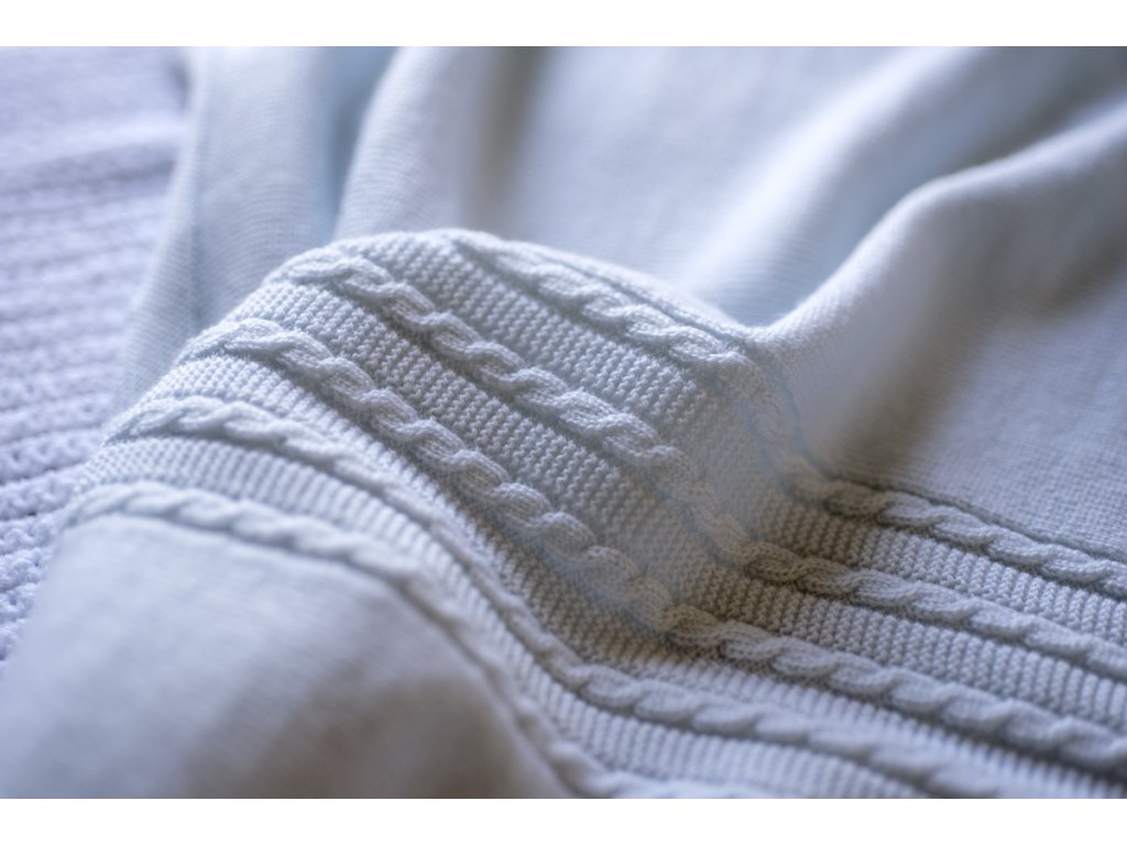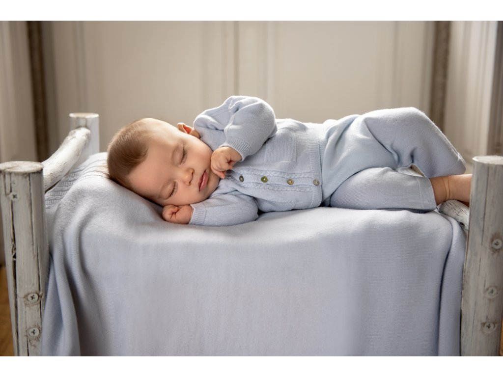 Exkluzivní deka s jemnými pletenými detaily ze 100% vlny merino té nejvyšší kvality a měkkosti. Perfektně se hodí jako dárek pro novorozence, při baby shower nebo při křtinách.