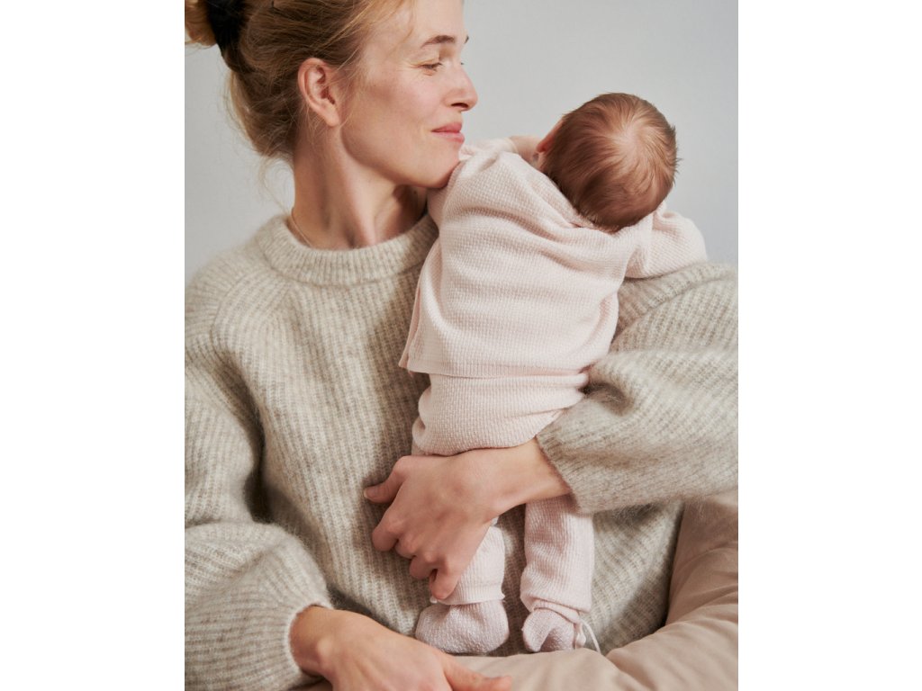 Pohodlné pletené legínky ze 100% merino udrží nožky vašich nejmenších v teple. Jsou jemně tkané, mají elastický pas a světloulince růžovou barvu.
