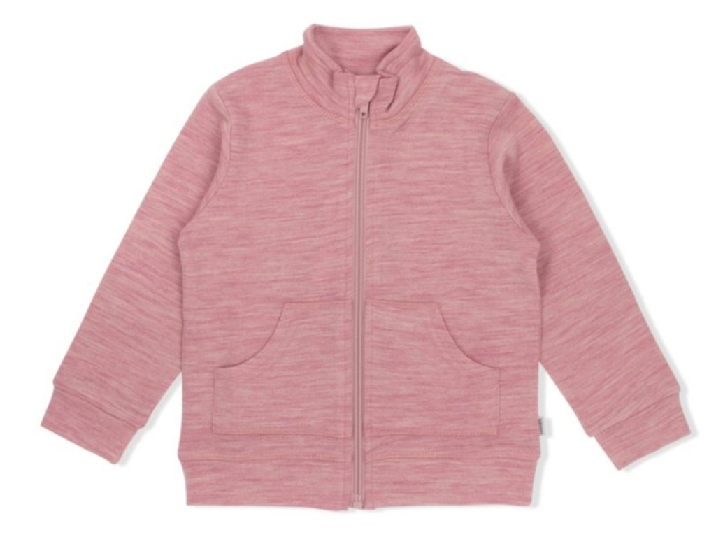 Dětská mikina ze 100% merino vlny té nejvyšší kvality a měkkosti v růžové barvě. Mikina má mírně vysoký límec, který v chladných dnech chrání krk před nepříjemným mrazem a větrem, měkoučký lem přes zip pod bradou, kapsy a extra záplaty na loktech pro větší odolnost.