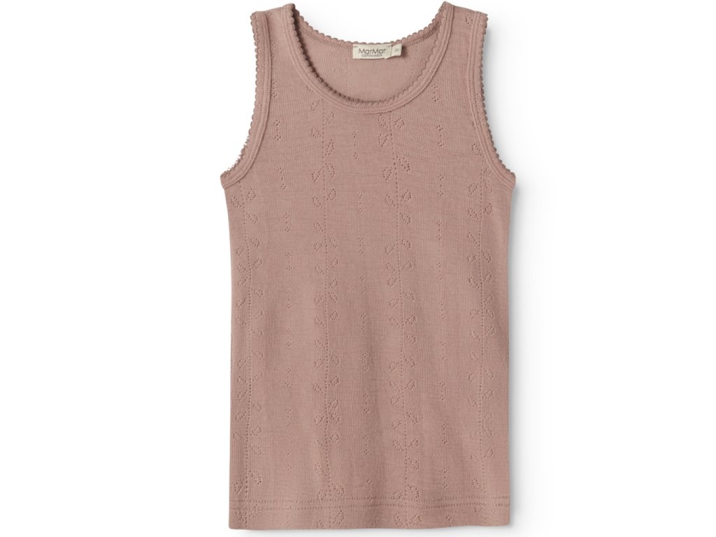 Pohodlné tílko pro děti z merino vlny ve starorůžové barvě od značky MarMar. Tílko má jednoduchý design, je měkké, jemné na dotyk a dokonale prodyšné. Zdobí jej roztomilý pletený vzor s dírkami a pikotový steh. Nosit se dá nejen v teplých měsících, ale také v chladnějším období jako spodní vrstva pod teplejší oblečení. Perfektní je také na spaní, kdy pomáhá udržovat optimální teplotu těla.
