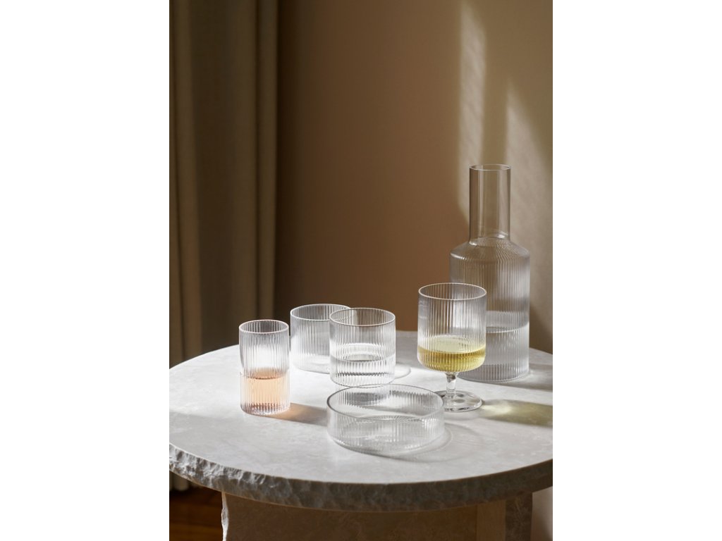 Sada 4 nízkých misek z ikonické kolekce skleněného nádobí Ripple od dánské značky ferm LIVING vytvoří z každodenního i slavnostního stolování výjimečný zážitek. Mimořádná je kvalitním zpracováním a velice jednoduchým designem, který nikdy nevyjde z módy. Do celé sady můžete servírovat jak slané občerstvení v podobě oliv, sušených rajčat, oříšků, tak i sladké dezerty. Do jedné z misek se skvěle hodí populární snídaně v podobě jogurtu nebo ovesné kaše.