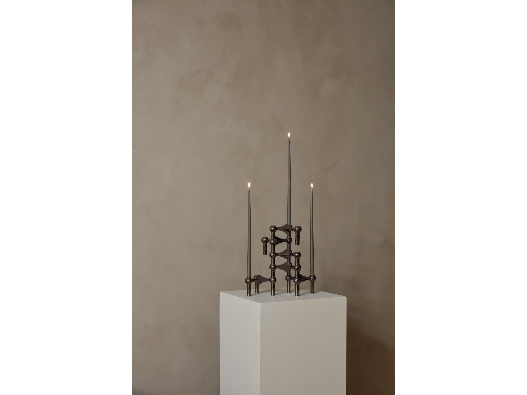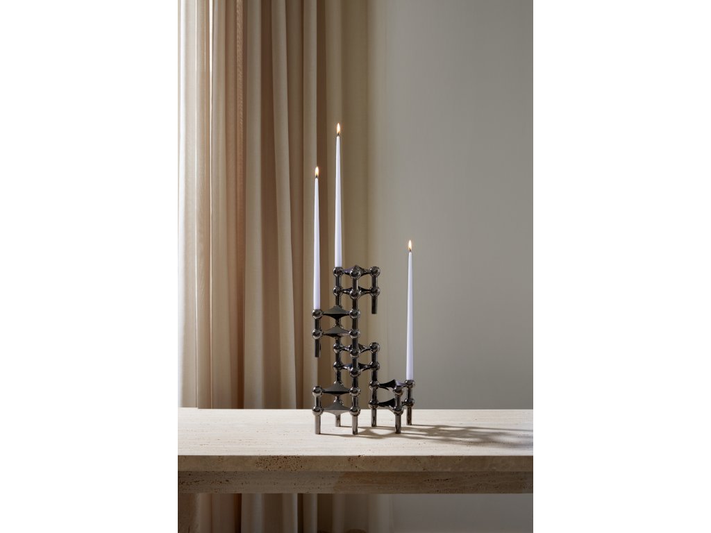 Celosvětový bestseller z černého lesklého chromu je dekorativním klenotem sám o sobě. Jeho sofistikovanost dokreslují tenké kuželovité svíčky, se kterými dokážete tvořit okouzlující světelné kompozice přesně podle vaší fantazie. Na jídelním stole, komodě, ale dokonce i stěně.