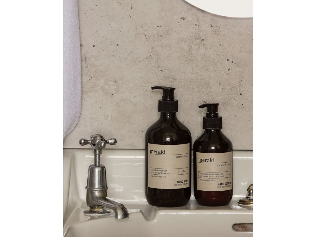 Mýdlo na ruce Meraki Northern Dawn jemně čistí a pečuje o pokožku vašich rukou. Organický extrakt z mrkve hydratuje a vyživuje, zatímco extrakt z petrželky pokožku čistí a zanechává ji svěží. Hydratační aktivní látka z cukrové řepy posiluje přirozenou kožní bariéru. Jemná, podmanivá vůně s tóny pomeranče, cedrového dřeva a sladkého balzamikového oleje promění každé mytí v příjemný rituál.