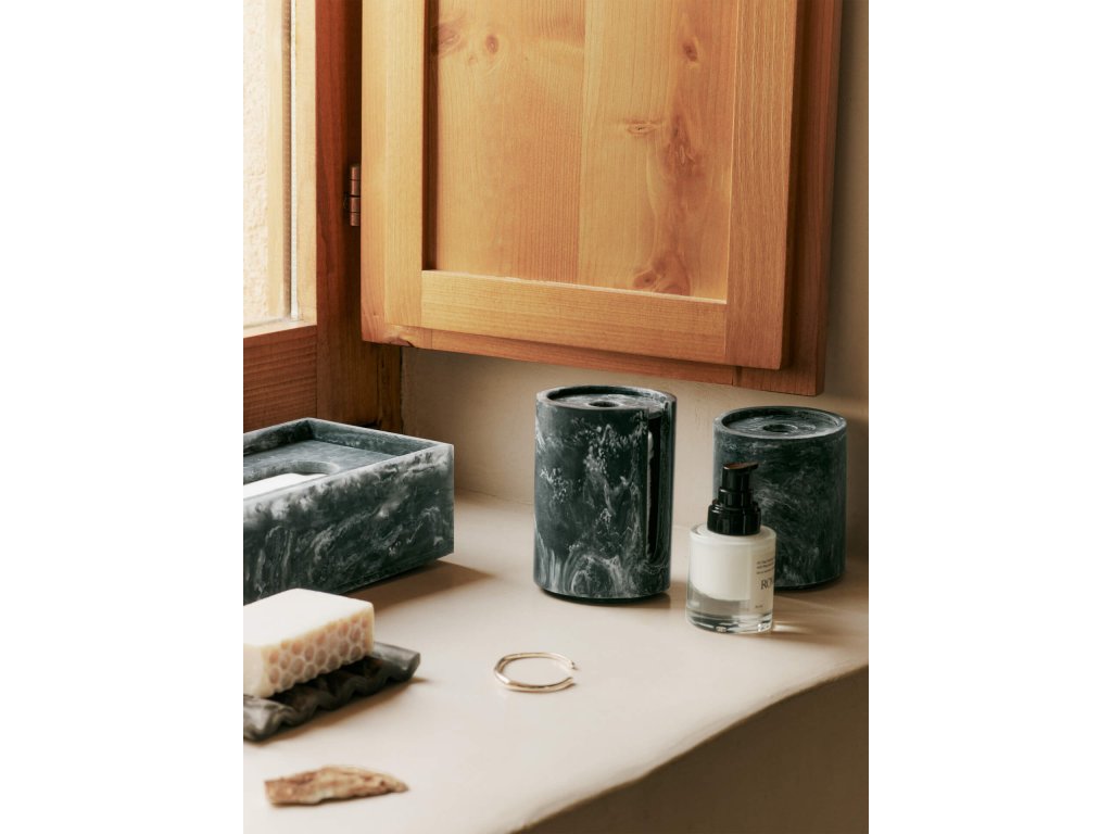 Proměňte vaši koupelnu v designový ráj s kolekcí Mist od ferm LIVING. Uložte vaše odličovací tamponky tak, abyste je měli vždy snadno po ruce, ale zároveň stylově ukryté v této dokonalé nádobě z mramorované pryskyřice.