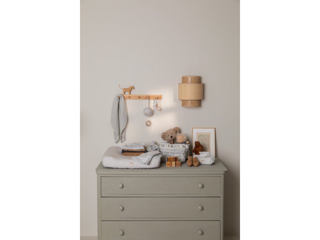 Povlak na přebalovací podložku v jemné modré barvě vnese do každodenní péče o miminko nádech něhy a pohody. Příjemný materiál je šetrný k dětské pokožce, snadno se sundává a pere, takže prakticky zvládne každou nehodu. Elegantní barva krásně ladí s dětskou výbavou a vytváří harmonické, útulné prostředí.