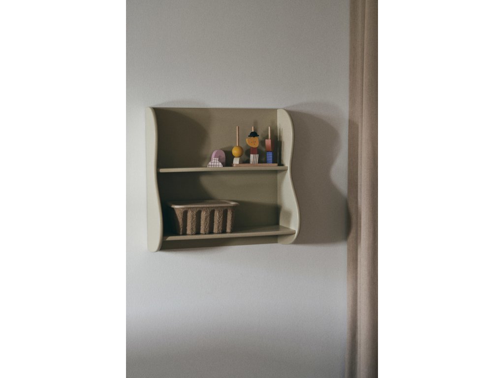 Hravá dětská police od dánské značky ferm LIVING krásně ozdobí stěny vašich menších prďolků i větších dobrodruhů. Zamilujete si hlavně díky jejím jemně oblým tvarům, které jsou nejen roztomilé, ale především bezpečné – žádné ostré hrany, jen měkké linie, které chrání dětské ručičky při každodenním objevování. Police je vyrobená z MDF s certifikací FSC™ a má béžovou barvu.