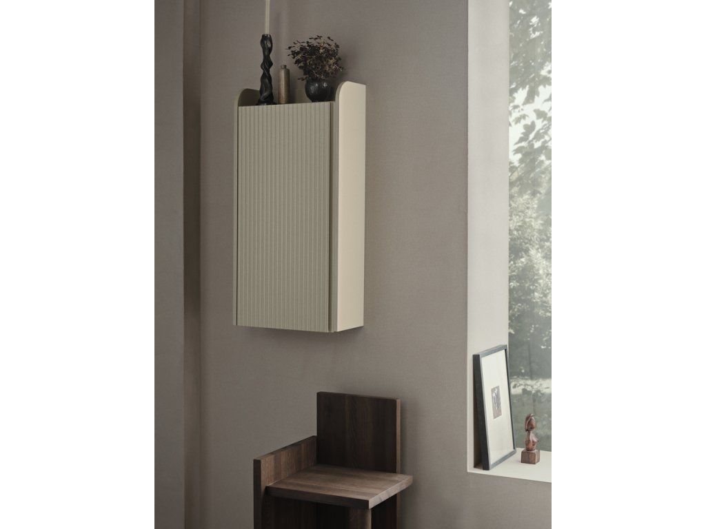 Nástěnná skříňka Sill od ferm LIVING je ideální, pokud hledáte elegantní způsob, jak schovat každodenní drobnosti a zároveň neubrat prostoru na stylu. Díky jemně zaobleným liniím a výraznému drážkovanému povrchu působí jako designový doplněk, ne jen jako úložný prostor.