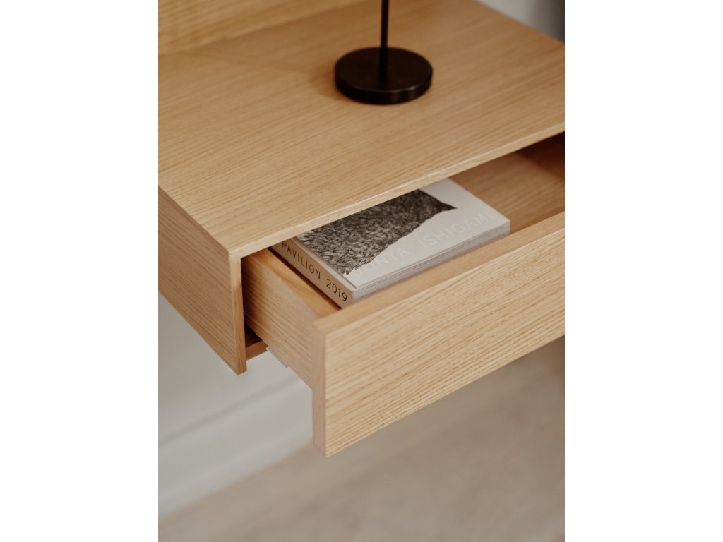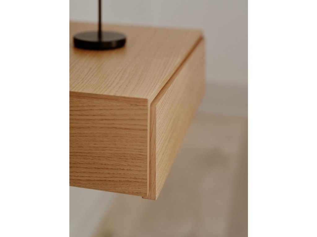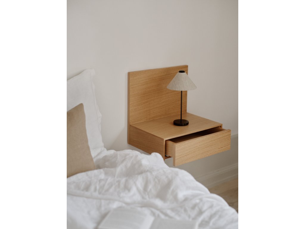 Stolek Tana je stvořen pro moderní interiéry, kde hrají prim čisté linie, jednoduchost a přírodní materiály. Svou nástěnnou konstrukcí působí mimořádně lehce a vzdušně, jako by se vznášel na stěně. Tento designový prvek nejen šetří podlahový prostor, ale také dodává ložnici otevřený a uklidňující charakter. Díky tomu je ideální volbou i pro menší místnosti, kde je potřeba zachovat co nejvíce volného prostoru.