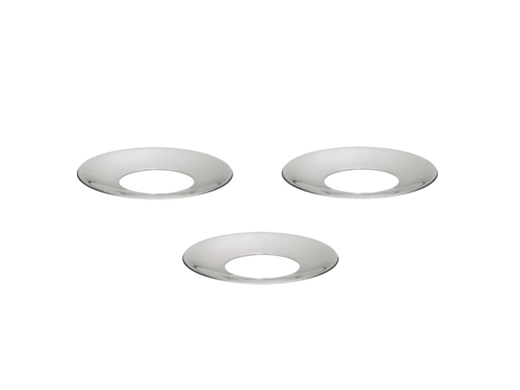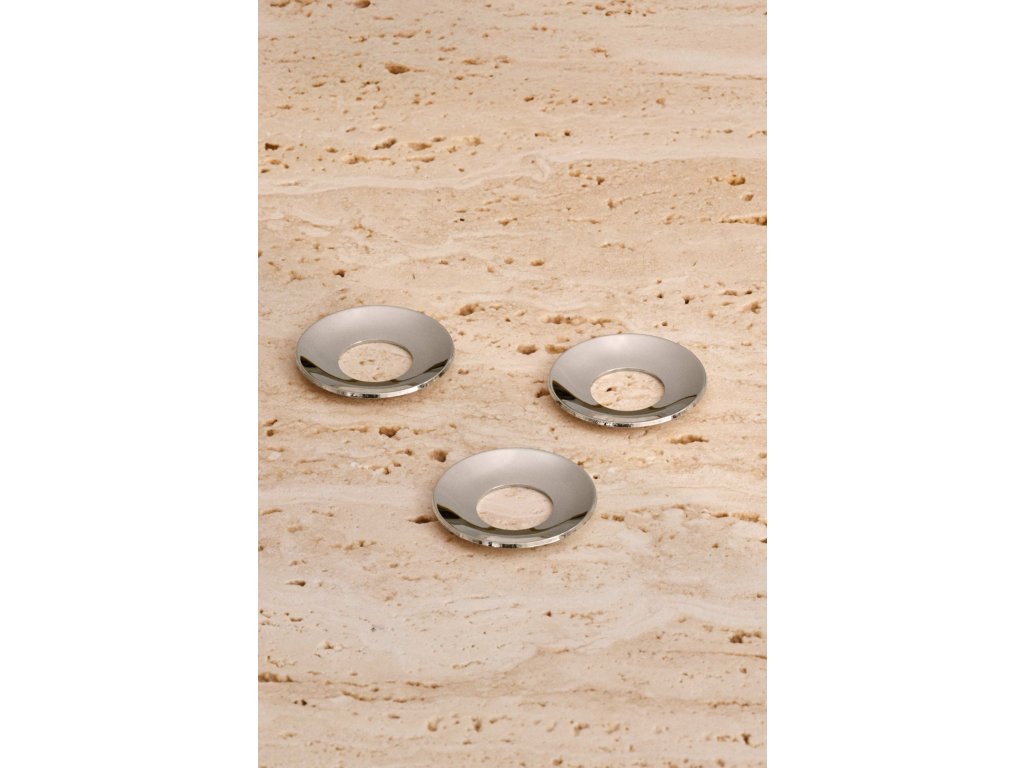 Sada 3 kusů ochranných kroužků z lesklého chromu perfektně ochrání svícny STOFF Nagel a povrch pod nimi před kapkami vosku.