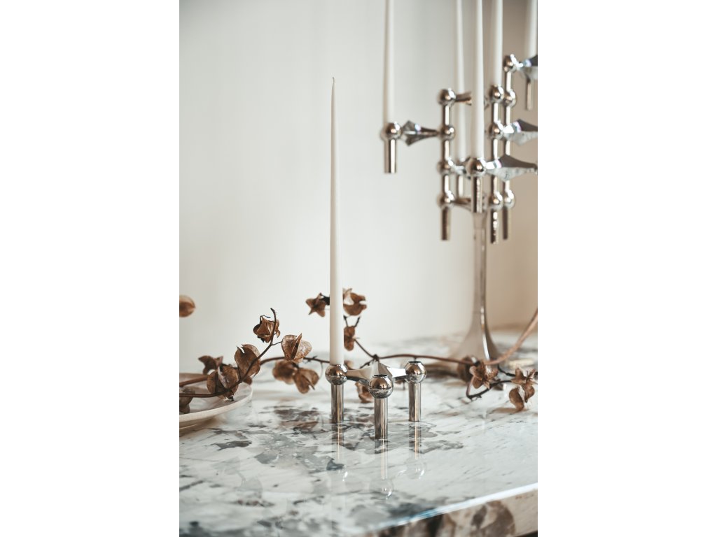 Praktický doplněk, který ochrání svícny STOFF Nagel i povrch pod nimi před kapajícím voskem ze svíček. To je minimalistický ochranný kroužek z kovu s lesklou chromovou úpravou ze stejnojmenné kolekce.