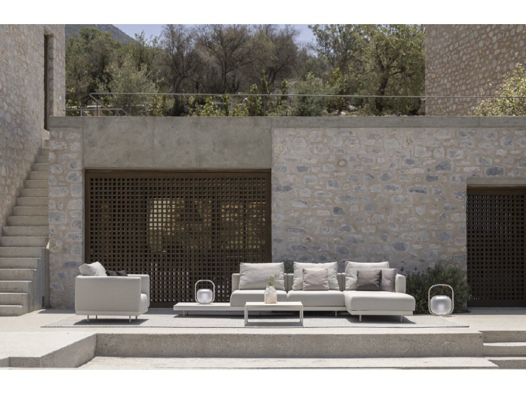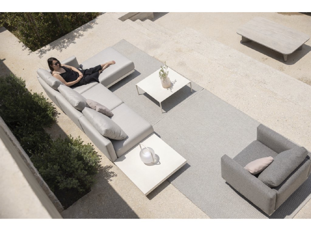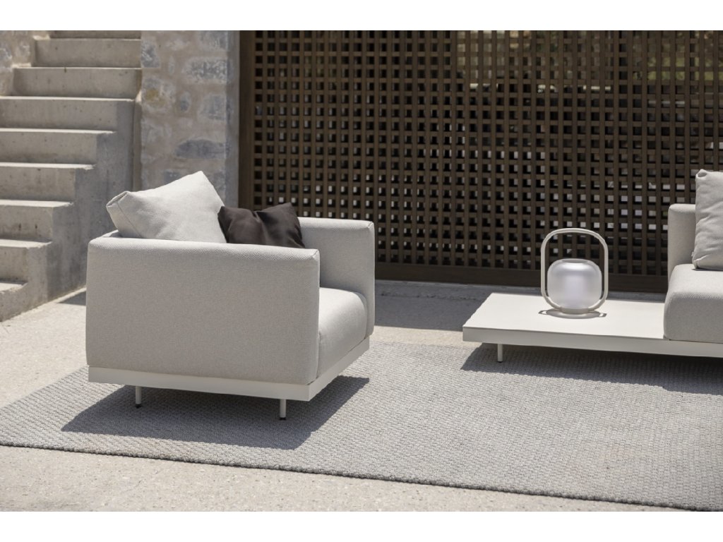 Jeho konstrukce je vyrobená z vysoce odolné práškově lakované nerezové oceli. Podsedák společně se zádovým polštářem je naplněný speciální rychleschnoucí pěnou Dryfeel®. Ta zajišťuje perfektní schnutí po dešti a nabízí pohodlí za každého počasí. Rozměr otomanu je 93 x 93 x 31 cm (Š x H x V).