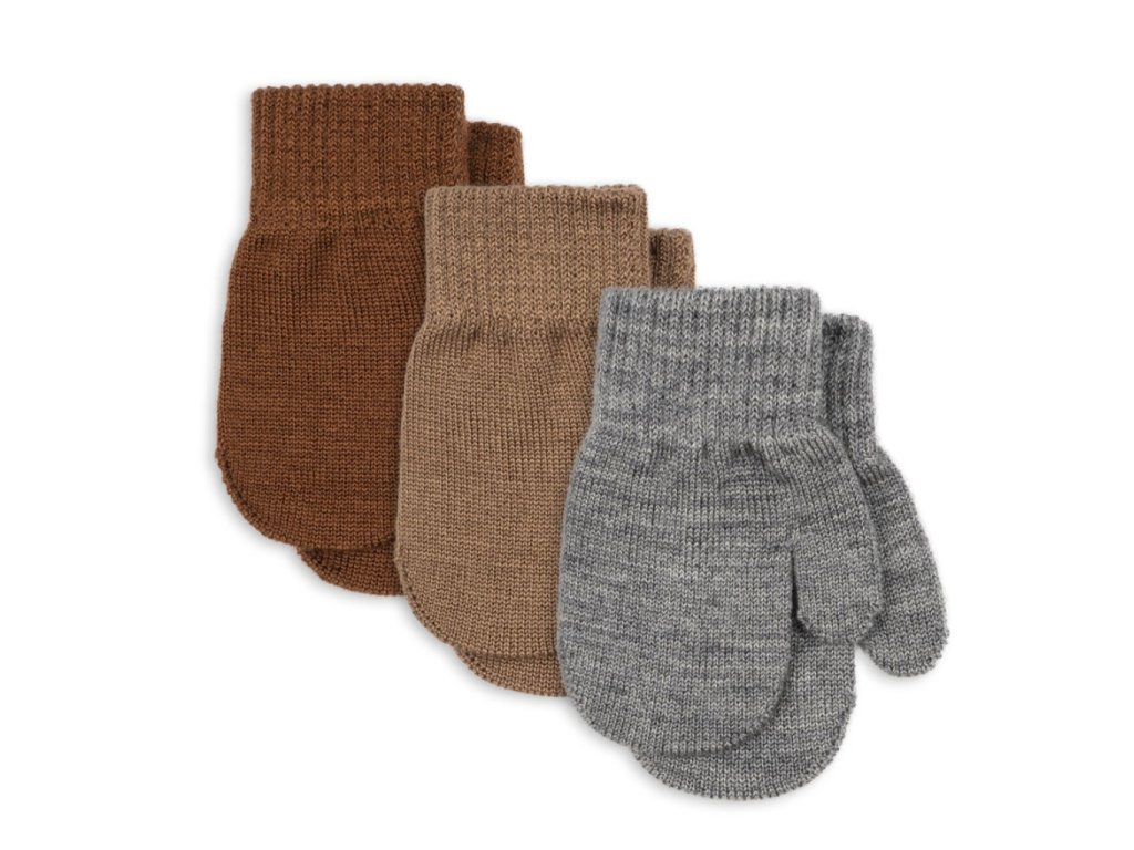 Klasické palcové rukavice z měkoučké směsi vlny od dánské značky Konges Sløjd zahřejí ručičky vašich dětí během chladných měsíců. V setu po 3 kusech.