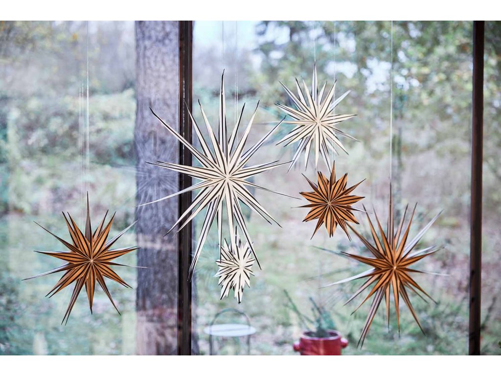 Když se blíží čas Vánoc, každý detail v našem domově se stává klíčem k vytvoření kouzelné atmosféry. Mezi nejjemnější a nejkrásnější prvky, které mohou okamžitě proměnit váš interiér v pohádkový svět, patří vánoční ozdoby. K těm se neodmyslitelně řadí i tradiční papírové hvězdy. Hvězdy velice snadno složíte po vytvarování jednotlivých cípů a zavěsíte do oken či ke stropu. Značka OYOY má ve své kolekci Toppu papírovou hvězdu s černými proužky na matném hnědém podkladu. Tato má Ø 40 cm a lze ji snadno kombinovat s jinými barvami a velikostmi.