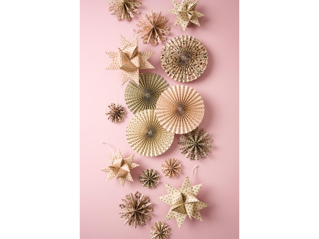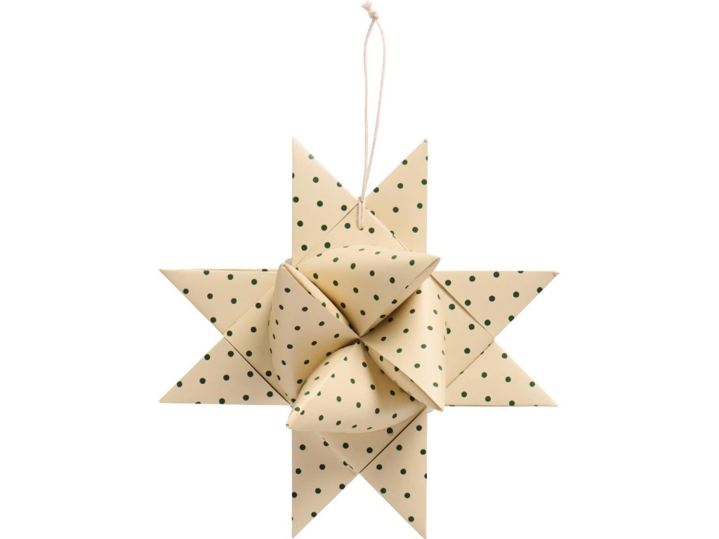 Papírová vánoční ozdoba ve tvaru hvězdy vnese do vaší sváteční atmosféry dotek magie. Hvězdičku lze pomocí šňůrky zavěsit na vánoční stromeček, na jehličnaté větvičky ve váze, anebo ji naaranžovat na věnce či zdobné girlandy.