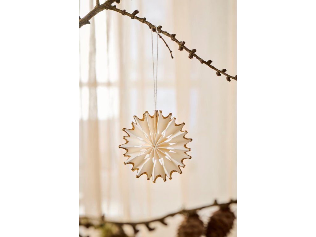 Papírová vánoční ozdoba ve tvaru sněhové vločky vnese do vaší sváteční atmosféry dotek magie. Ozdobu lze pomocí šňůrky zavěsit na vánoční stromeček, na jehličnaté větvičky ve váze, anebo ji naaranžovat na věnce či zdobné girlandy.