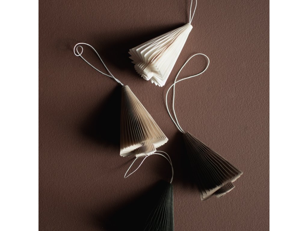 Papírová vánoční ozdoba ve tvaru stromečku vnese do vaší sváteční atmosféry dotek magie. Ozdobu lze pomocí šňůrky zavěsit na vánoční stromeček, na jehličnaté větvičky ve váze, anebo ji naaranžovat na věnce či zdobné girlandy.
