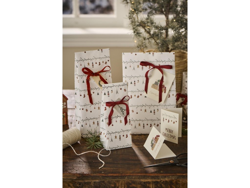 Představte si ten kouzelný okamžik, kdy se všechny vánoční přípravy chýlí ke konci a vy se můžete ponořit do světa balení dárků. Tento papírový sáček od IB Laursen, zdobený tradičními vánočními motivy, vám usnadní práci a dárku přidá na atraktivitě. Stačí jen přidat barevnou stuhu, větvičku nebo jinou roztomilou ozdobu a malé umělecké dílo, které zazáří pod vaším vánočním stromečkem, je na světě.