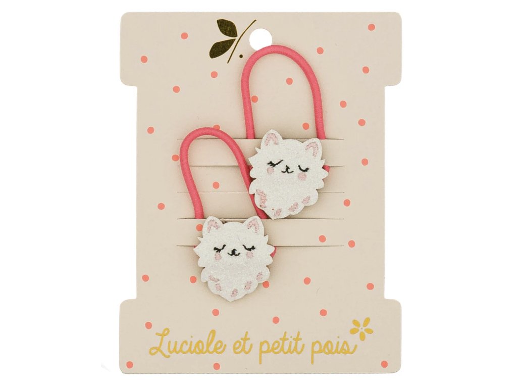 Pár gumiček do vlasů s kočičkami od francouzské značky Luciole et Petit Pois je nádherným doplňkem pro úpravu všech typů dětských vlásků.