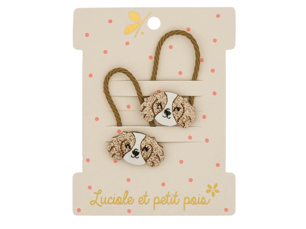 Pár gumiček do vlasů s pejsky od francouzské značky Luciole et Petit Pois je nádherným doplňkem pro úpravu všech typů dětských vlásků.