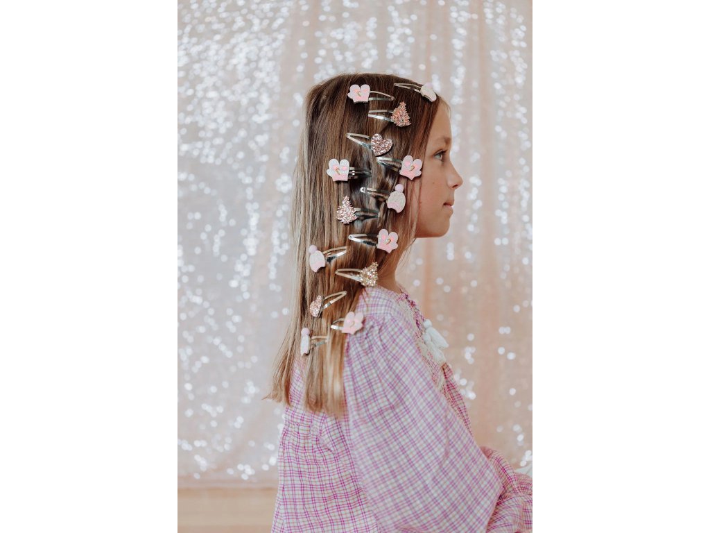 Ozdoby na sponkách jsou ručně vyrobené s maximální péčí a důrazem na kvalitu. Jemný třpyt, který je zdobí, zachycuje světlo a dodává účesu kouzelný nádech. Ozdoby jsou našité na kvalitní kovové sponky typu clic clac, které se snadno upínají, pevně drží ve vlasech a zároveň jsou pohodlné na nošení.