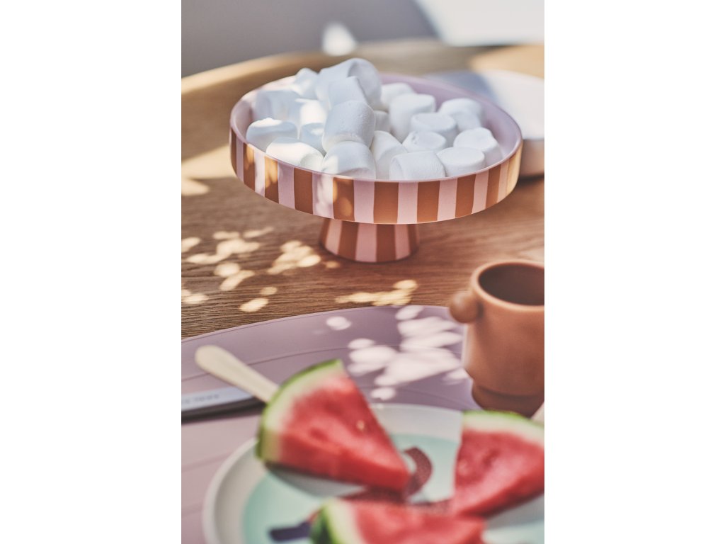 Podnos od OYOY s nadčasovým vzorem karamelových proužků je součástí hravé a neuvěřitelně stylové kolekce Toppu. Ta byla poprvé představena v roce 2017 a od té doby pro ni bije srdce stovkám fanoušků skandinávského designu. My nejsme žádnou výjimkou a většina jejích kousků zdobí i naše domácnosti. Podnos je vyrobený z kameniny, která je velice odolná vůči mechanickému poškození. Díky tomu se můžete spolehnout na jeho dlouhou životnost a nebát se jeho používání v běžném každodenním provozu.