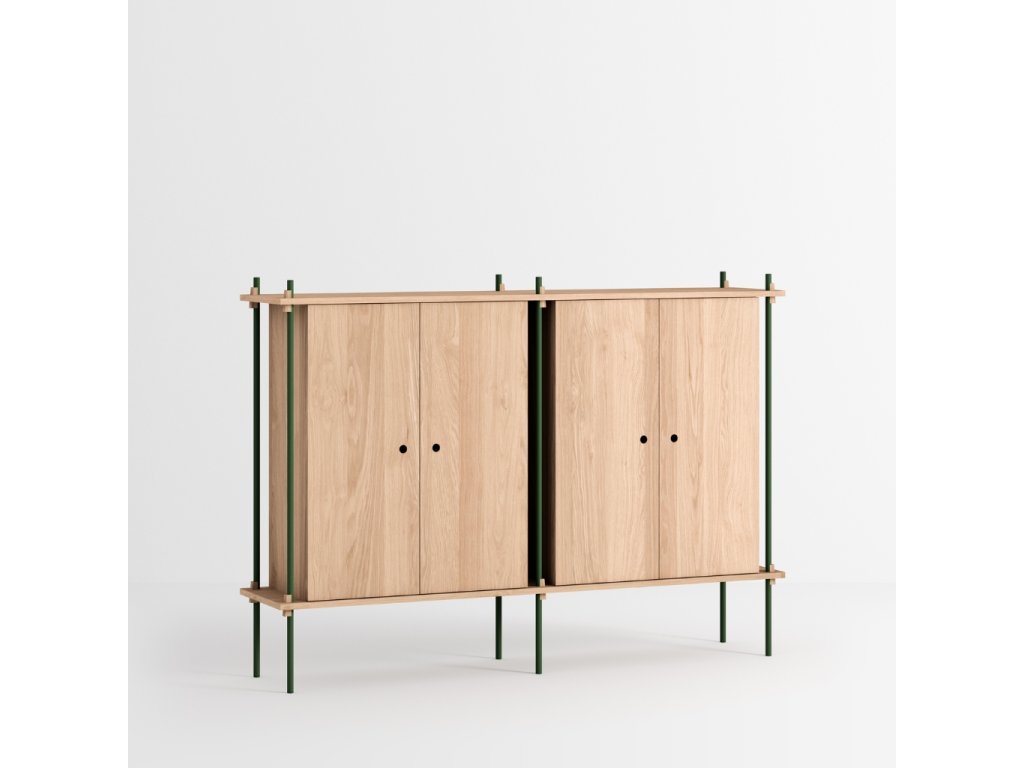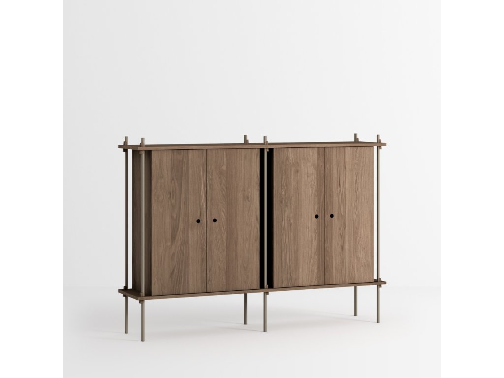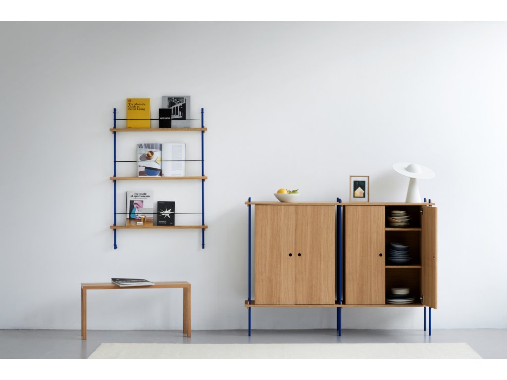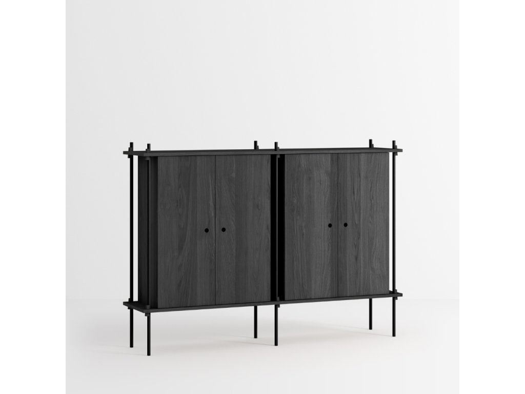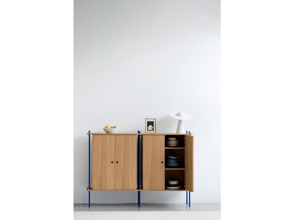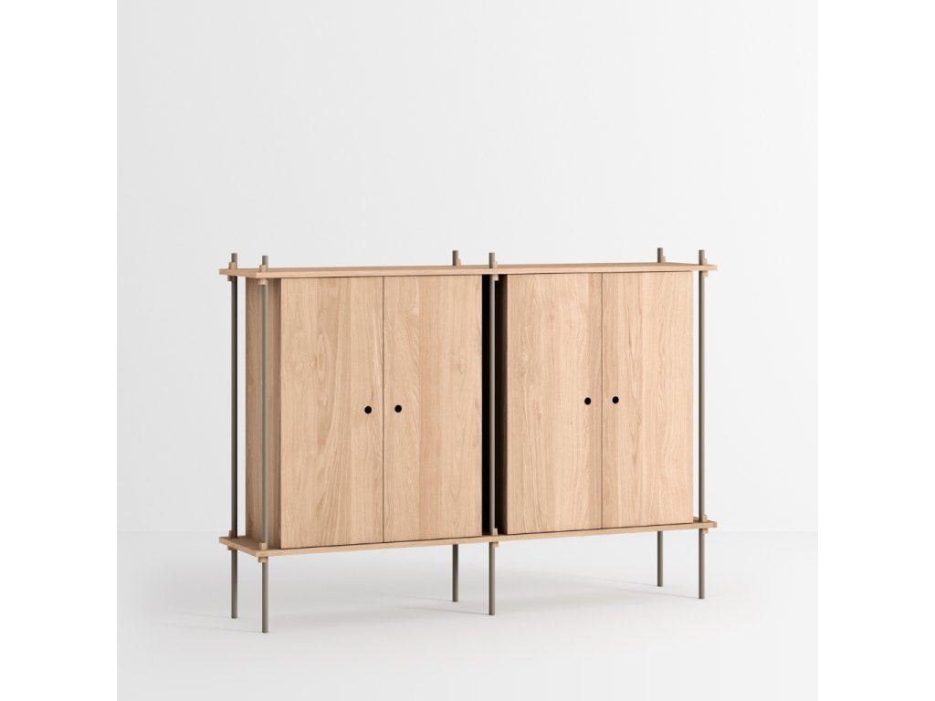 Předdefinovaná skříňková sestava S.115.2.E. dánské značky MOEBE je vhodná jako doplněk k systému tvořenému policemi. Zrovna tak ji ale můžete využít například místo komody. Skříňka skvěle poslouží k uložení věcí, které si přejete schovat. Jen pozor, její součástí nejsou vnitřní police.
