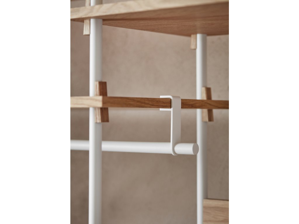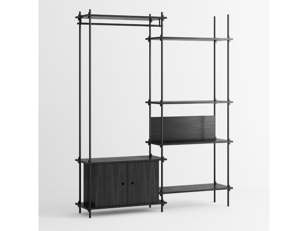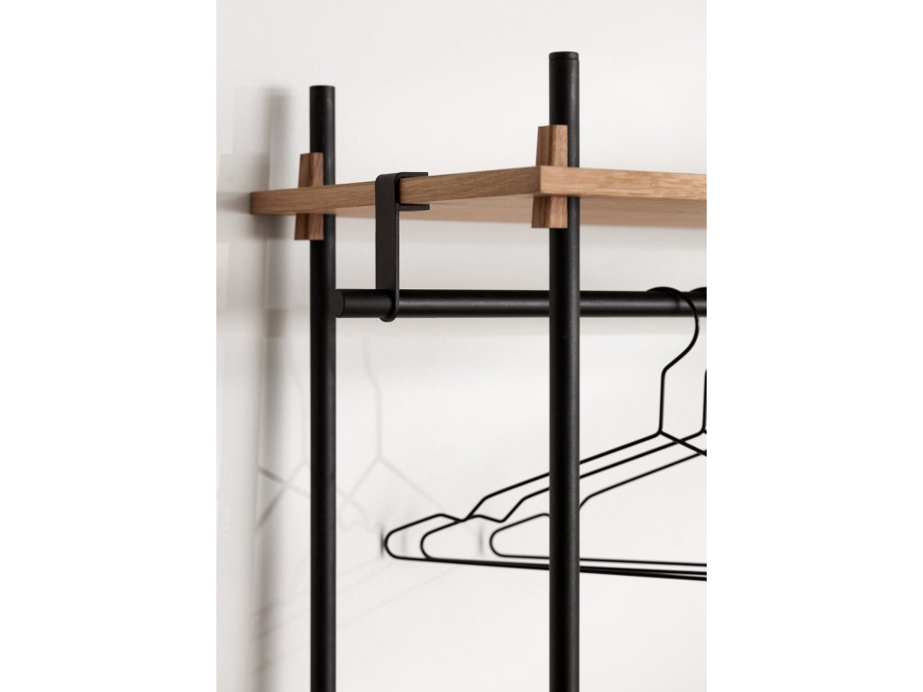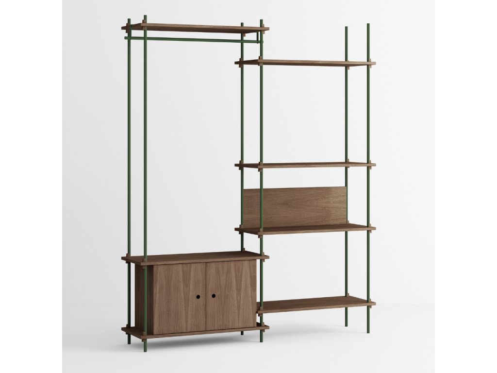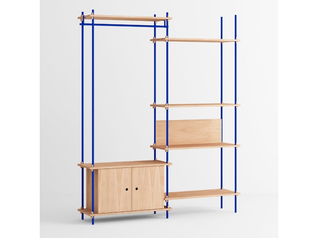 Předdefinovaná policová sestava S.200.2.G. dánské značky MOEBE obsahuje šatní tyč, proto se bude nejlépe hodit do vaší předsíně na zavěšení kabátů, bund a na odložení čepic, šál i bot. Funkci otevřené skříně skvěle splní v dětském pokoji, ložnici nebo šatně. A pokud vás tato forma využití přestane bavit, jednoduše tyč sundáte a máte policový systém vhodný kamkoliv, kam si jen vzpomenete.