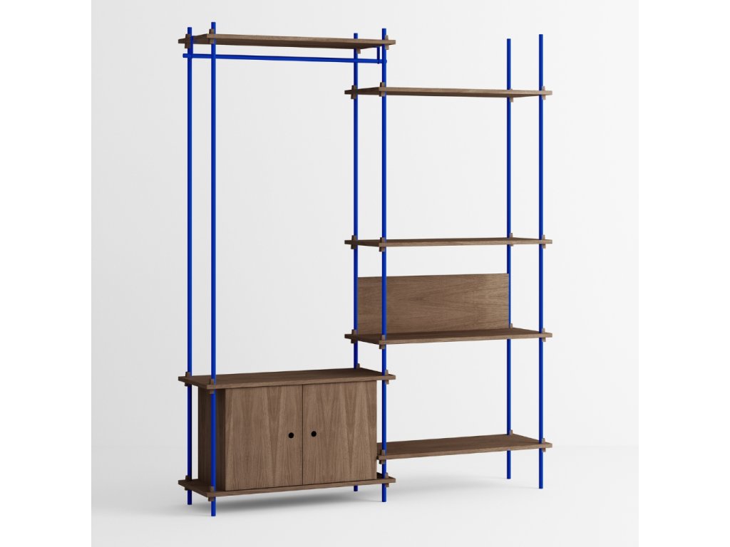 MOEBE systém se vyrábí v mnoha barevných provedeních a díky nepřebernému množství komponentů jej lze využít v jakékoliv místnosti vašeho bydlení. Obohatit jej můžete například skříňkou, šatní tyčí, různými rozměry polic nebo zadními deskami, které přidají na zajímavosti a zvýší maximální nosnost polic z 20 kg na 30 kg.