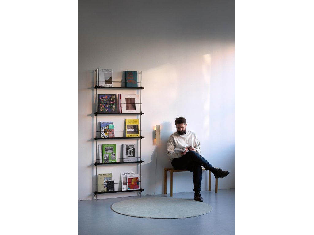 Modulární policový systém "Magazine" představuje chytrý způsob, jak mít stále na očích ty nejkrásnější knížky, časopisy, obrázky nebo nejposlouchanější vinylové desky. Umístit na stěnu jej můžete v obývacím nebo dětském pokoji. Skvěle vypadá také v blízkosti čtecího koutku a praktické využití najde i ve vaší kanceláři pro organizaci pracovních dokumentů. Skládá se z ocelových tyčí a polic, které mají mírně vyvýšené okraje tak, aby umístěné předměty nesklouzly, zatímco černá gumička je drží na svém místě.