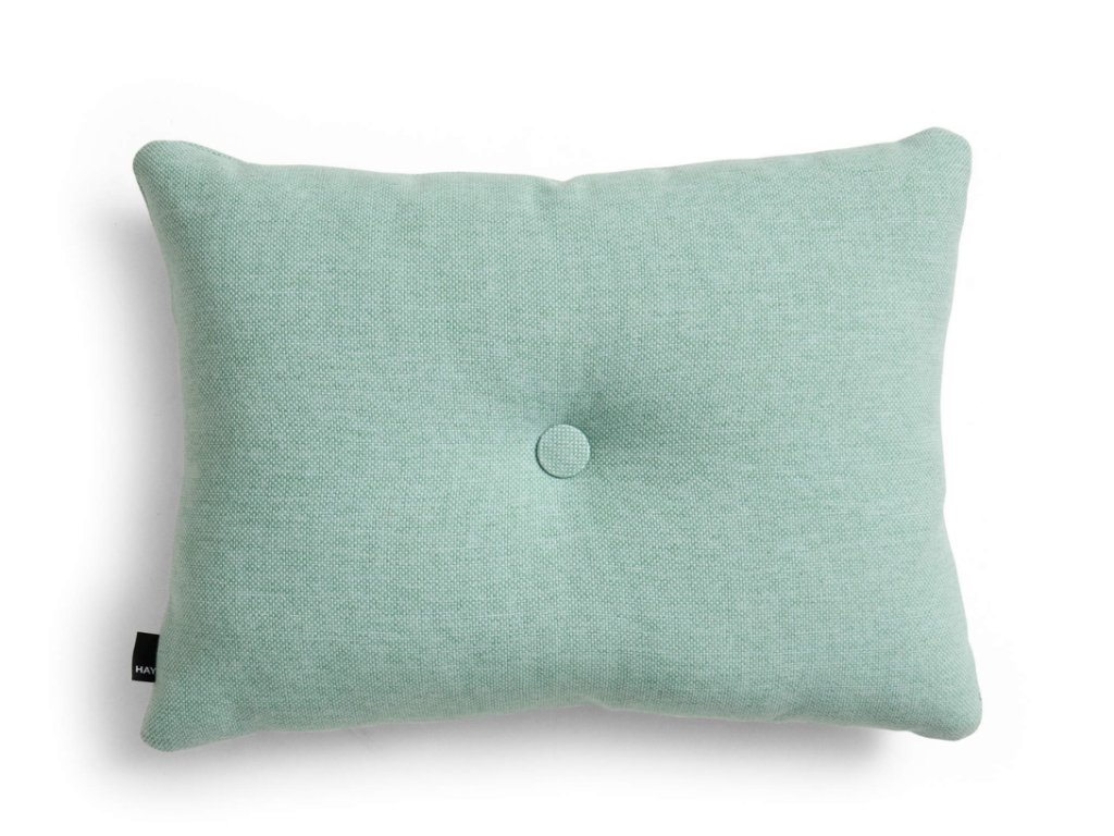 Proslavená stálice v portfoliu značky HAY v mátové barvě! Designový polštář Dot se pyšní elegantním obdélníkovým tvarem s nepřehlédnutelným knoflíkem uprostřed. Váš interiér stylově oživí a poskytne vám extra dávku pohodlí. Ať už ho umístíte na pohovku, křeslo, nebo postel, bude vypadat skvěle! Polštář nemá odnímatelný povlak, doporučujeme jej čistit pouze chemicky.