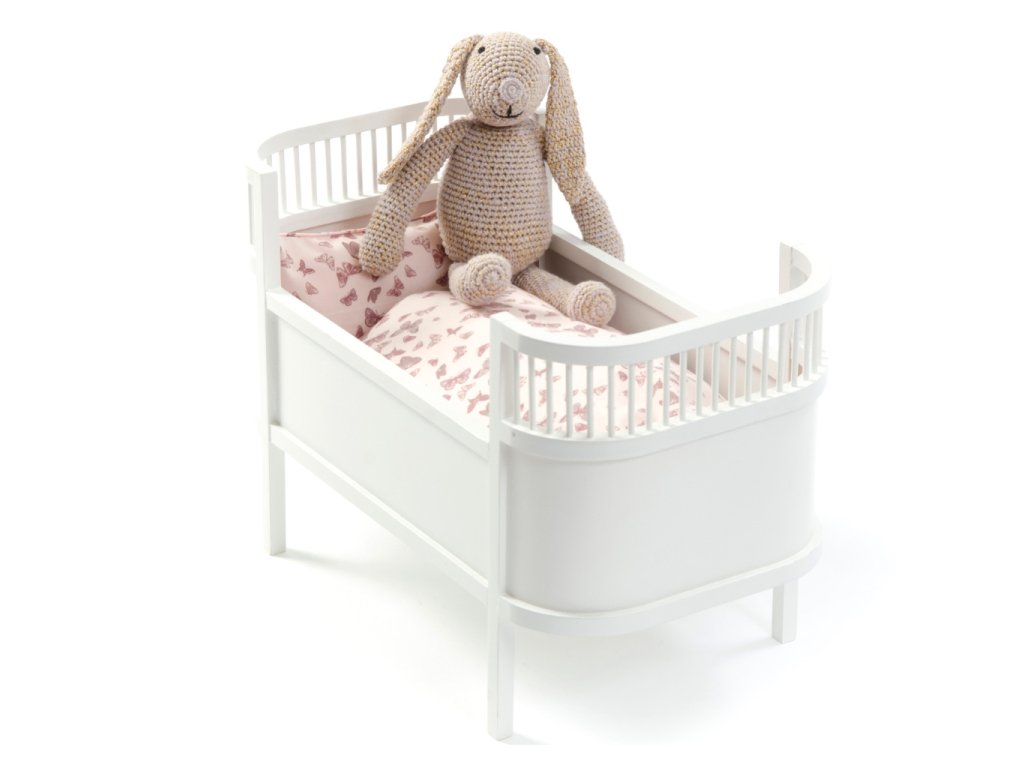 Díky rozkošné, ručně vyrobené dřevěné postýlce od značky Smallstuff budou mít panenky nebo oblíbená plyšová zvířátka vašich dětí dokonalé místo na spaní. Postýlka má bílou barvu a krásný design, který se bude vyjímat v každém dětském pokojíčku. Její součástí je bavlněná matrace.