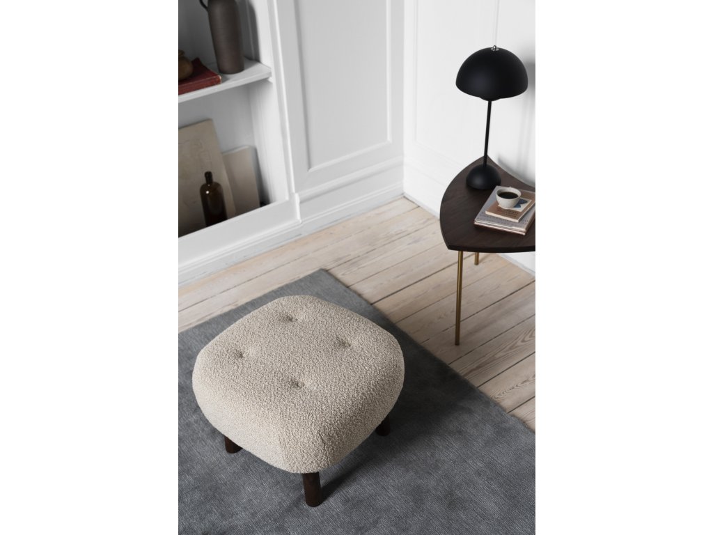 Pouf je vyroben z vysoce kvalitních materiálů, které zajištují dlouhou životnost a odolnost. V tomto případě se jedná o kombinaci masivního ořechového dřeva s překližkou, která je následně potažena HR pěnou a polyesterovou vatou. Čalounění je z vlněného bouclé Karakorum.