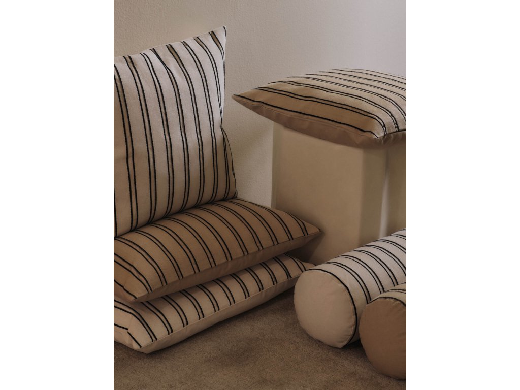 Tento elegantní povlak na polštář z kepru od ferm LIVING okamžitě zaujme svým minimalistickým designem. Béžová barva s kontrastními černými proužky přináší do vašeho interiéru nadčasový skandinávský styl. Ať už ho umístíte na postel, oblíbené křeslo ve vašem čtecím koutku, pohovku v obývacím pokoji, vytvoříte s jeho pomocí harmonické místo pro odpočinek a relaxaci.