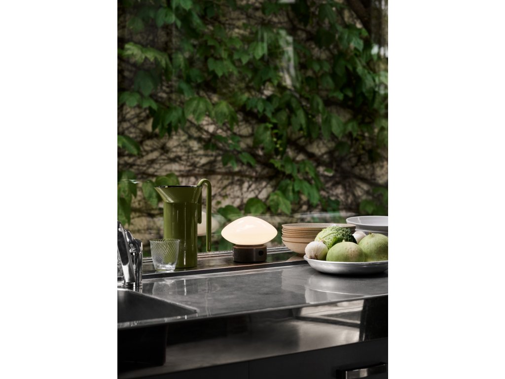 Lampa je vyrobená z ručně foukaného opálového skla a elegantního mramoru v hnědém odstínu. Nabízí 3 úrovně jasu, které umožňují vytvořit tu správnou atmosféru pro každou příležitost – od měkkého tlumeného světla pro relaxaci až po jasnější osvětlení pro praktické využití. Lampa je vybena integrovaným LED světelným zdrojem a nabíjí se přiloženým magnetickým kabelem. V provozu při plném nabití vydrží až 10 hodin.