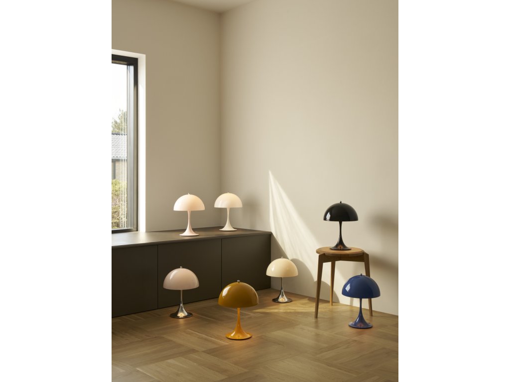 Panthella, původně navržená v roce 1971, je uznávanou klasikou dánského designéra Vernera Pantona, jehož hravý styl dodnes odráží široká škála dostupných barevných variant a na první pohled rozpoznatelný tvar lampy. Lampa má polokulové stínidlo, které směřuje světlo dolů. Společně s bíle lakovaným vnitřkem a odrazem od trumpetového stonku poskytuje příjemné světlo, které je perfektní pro dotvoření útulné atmosféry. Kromě funkce plynulého 4 stupňového stmívání (0 %, 10 %, 33 %, 100 %) je bezdrátová, proto ji můžete umístit i tam, kde není přístup k elektrické síti. Skvěle vypadá v obývacím a dětském pokoji, ložnici, v chodbě, na terase. No zkrátka úplně kdekoliv.