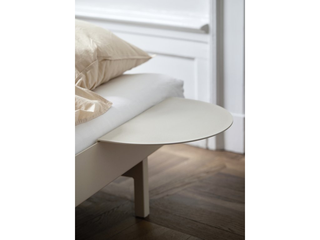 Minimalistický ocelový rám je dostupný v několika barevných variantách i v nerezovém provedení. Vybrat si můžete také nižší nebo vyšší verzi podle toho, co vám při odpočinku nejvíc vyhovuje. Postel lze navíc doplnit o jeden nebo dva odkládací stolky, které na její konstrukci přirozeně navazují a rozšiřují její každodenní funkčnost.