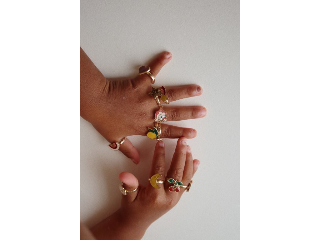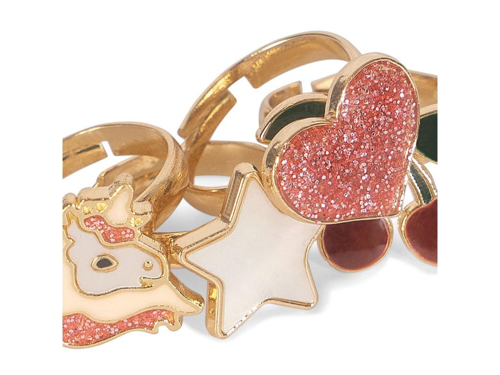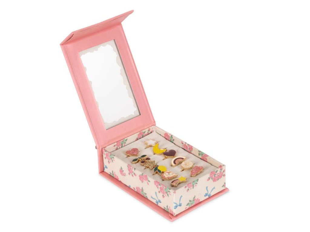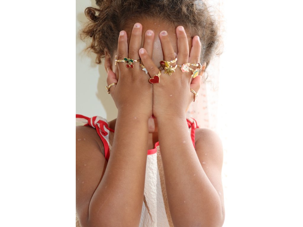 Chcete vaší malé parádnici vykouzlit úsměv na tváři? Omrkněte tuto krásnou sadu 12 kusů zlatých prstýnků s hravými motivy, které provázejí celou značku Konges Sløjd. Prstýnky jsou nastavitelné, a tak se snadno přizpůsobí různým velikostem malých prstíků.