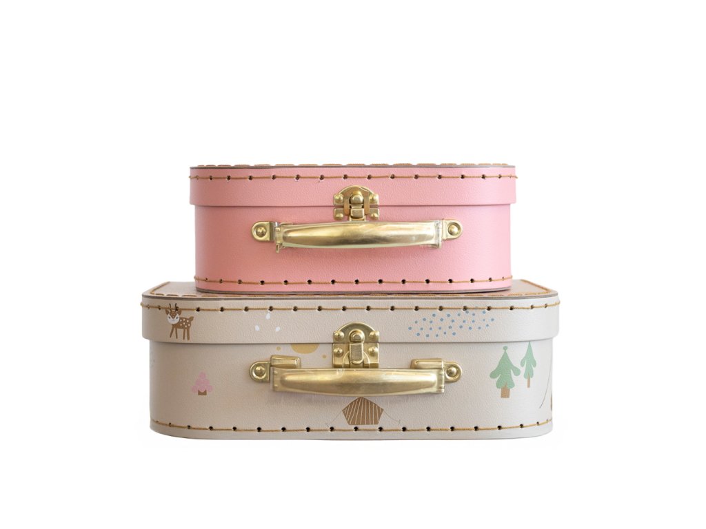Sada dvou roztomilých kartonových kufříků pro děti s jelínky a kachničkami od značky OYOY. Ideální úkryt pro panenky, šperky, autíčka, tajné poklady i krásný doplněk do dětského pokojíčku.
