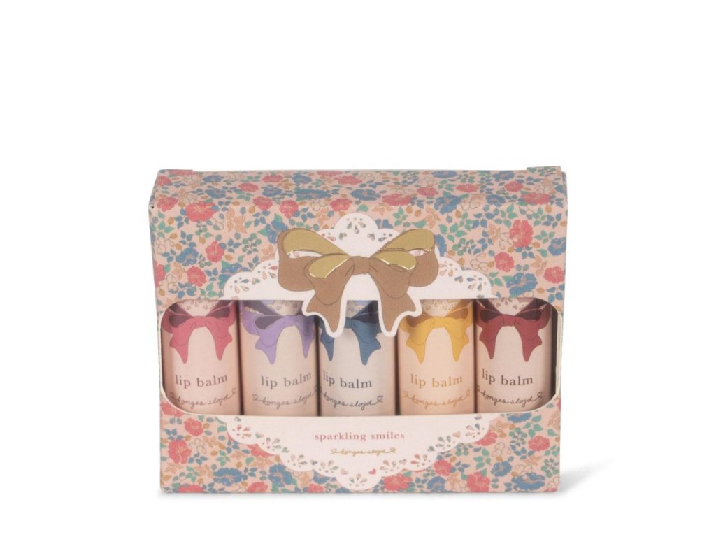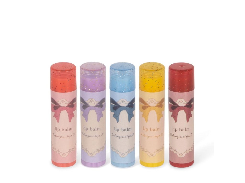 Sada pěti voňavých, třpytivých a hydratačních balzámů na rty od značky Konges Sløjd v krásném dárkovém balení. Sada je navržena s ohledem na bezpečnost dětí. Velice snadno se nanáší, rty vyživuje a chrání. Ideální na hraní, na parádu nebo jen tak pro radost.